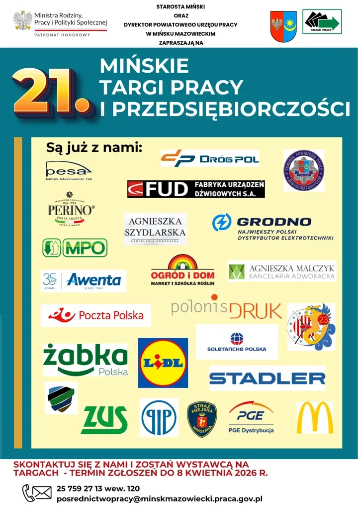 W Mińsku Mazowieckim lista uczestników targów pracy rośnie z każdym dniem, a zapowiada się spotkanie, które ma zebrać pod jednym dachem bardzo różne światy. 21 kwietnia pojawią się tam pracodawcy z przemysłu, handlu, usług i instytucji publicznych, więc kandydaci dostaną rzadką okazję, by od razu usłyszeć, czego oczekuje druga strona. Powiatowy Urząd Pracy zachęca też przedsiębiorców i podmioty szkoleniowe, bo wydarzenie ma łączyć rekrutację z rozmową o rozwoju lokalnego rynku pracy.